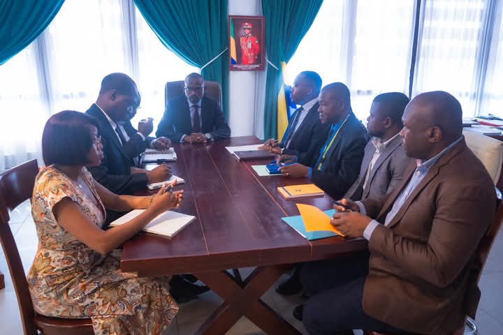 Le Ministre de l’Environnement et du Climat, Mays MOUISSI, a reçu en audience le Directeur général de la Société Équatoriale des Mines du Gabon, Jude NGWA EMANE.