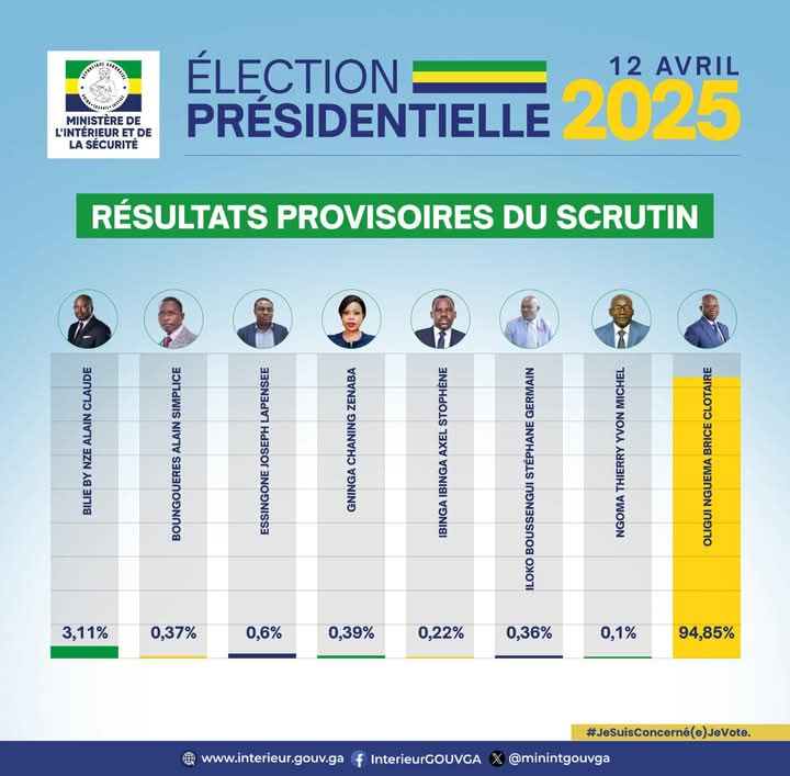 Le vendredi 18 avril 2025, le ministre de l’intérieur et de la Sécurité Hermann IMMONGAULT, a tenu une conférence de presse, dont la teneur était de rendre public les résultats actualisés avant leur transmission officielle à la Cour Constitutionnelle.