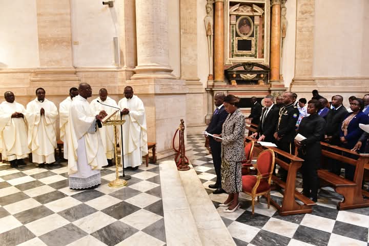 À Rome, le couple présidentiel a assisté à une messe dédiée au Gabon à la Basilique Saint-Pierre.