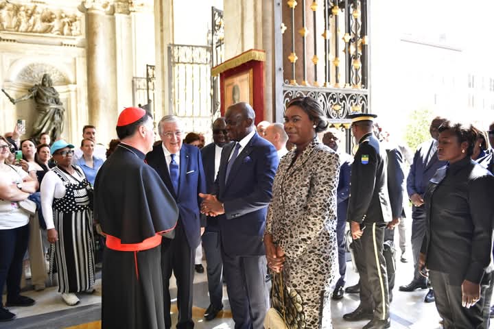 À Rome, le couple présidentiel a assisté à une messe dédiée au Gabon à la Basilique Saint-Pierre.