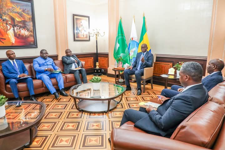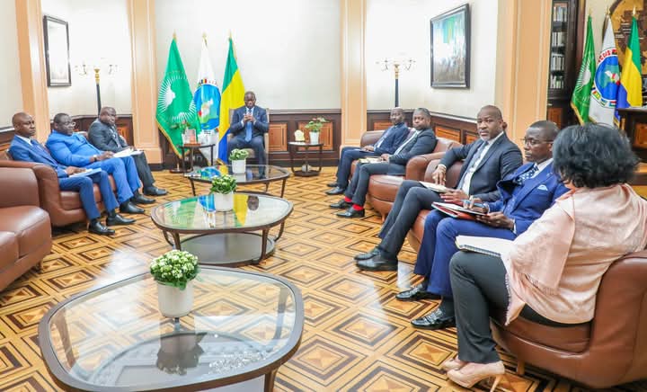 Le mercredi 11 juin 2025, le Président de la République, Brice Clotaire Oligui Nguema, a reçu en audience, au Palais Rénovation, une délégation composée de représentants du ministère des Travaux publics, du Fonds Autonome National d’Entretien des Infrastructures Routières (FANEIR), de la société Porteo, ainsi que de la BGFIBank.