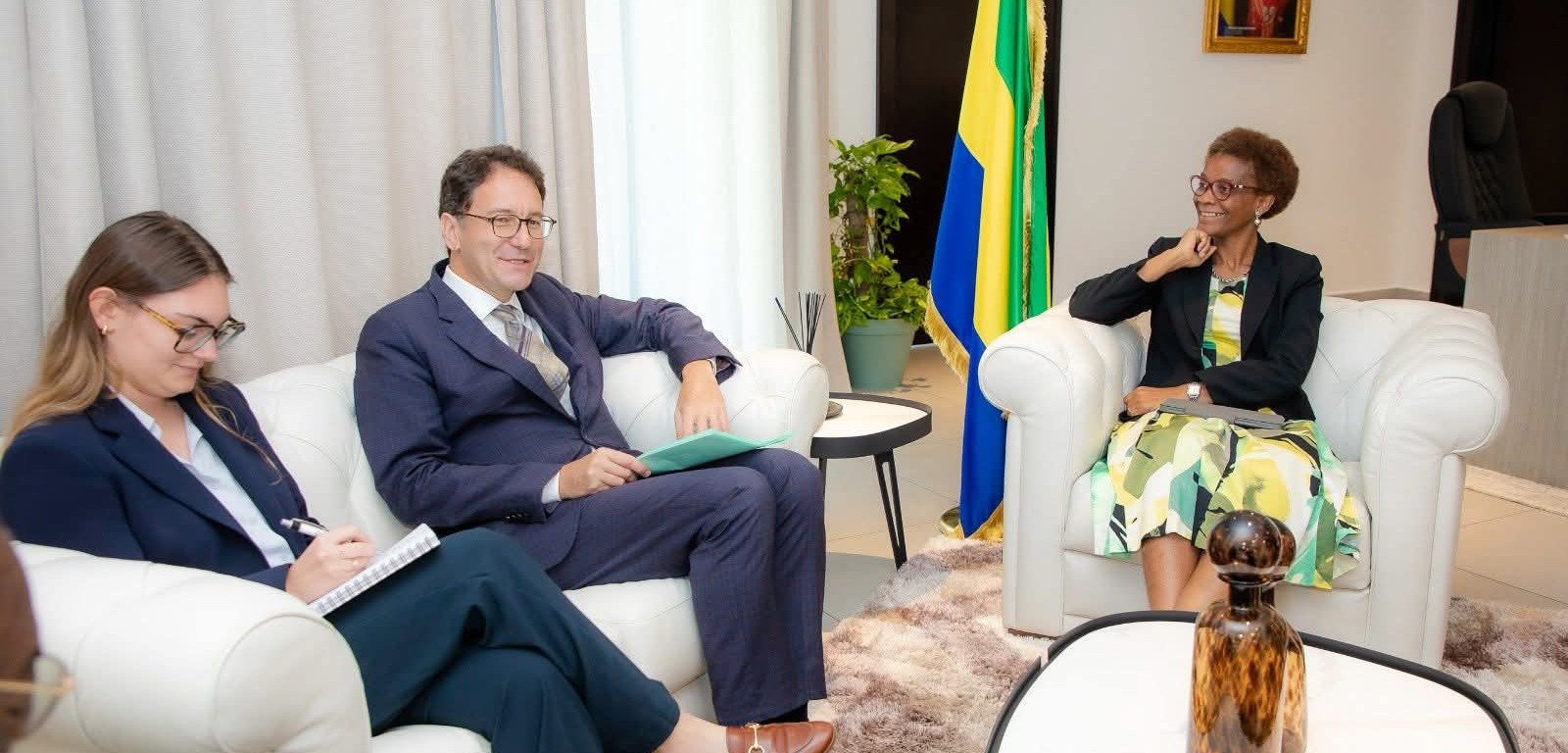 Le mercredi 18 juin 2025, Louise Pierrette Mvono, Ministre de la Planification et de la Prospective, a reçu en audience Fabrice Mauries, Ambassadeur de France au Gabon.