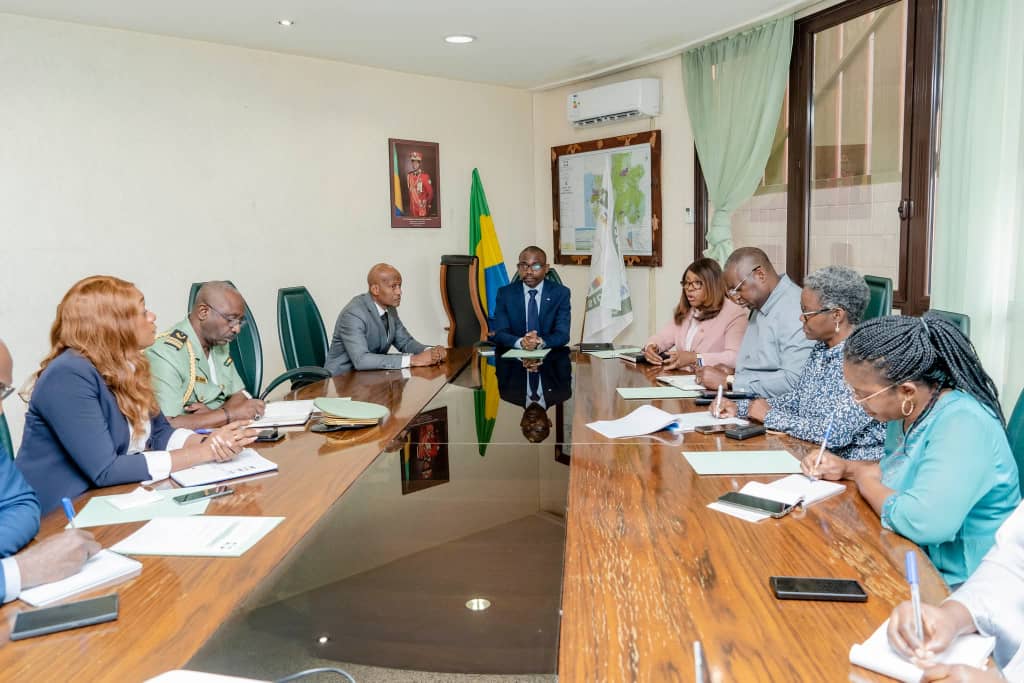 Le Ministre de l’Environnement, de l’Écologie et du Climat, Mays MOUISSI, a co-présidé une réunion interministérielle de crise consacrée à la protection des mangroves le vendredi 20 juin 2025, en présence de ses collègues Maurice NTOSSUI ALLOGO, Ministre des Eaux et Forêts, chargé du Conflit Homme-Faune ; Laurence NDONG, Ministre de la Pêche, de la Mer et de l’Économie bleue, Porte-parole du gouvernement.