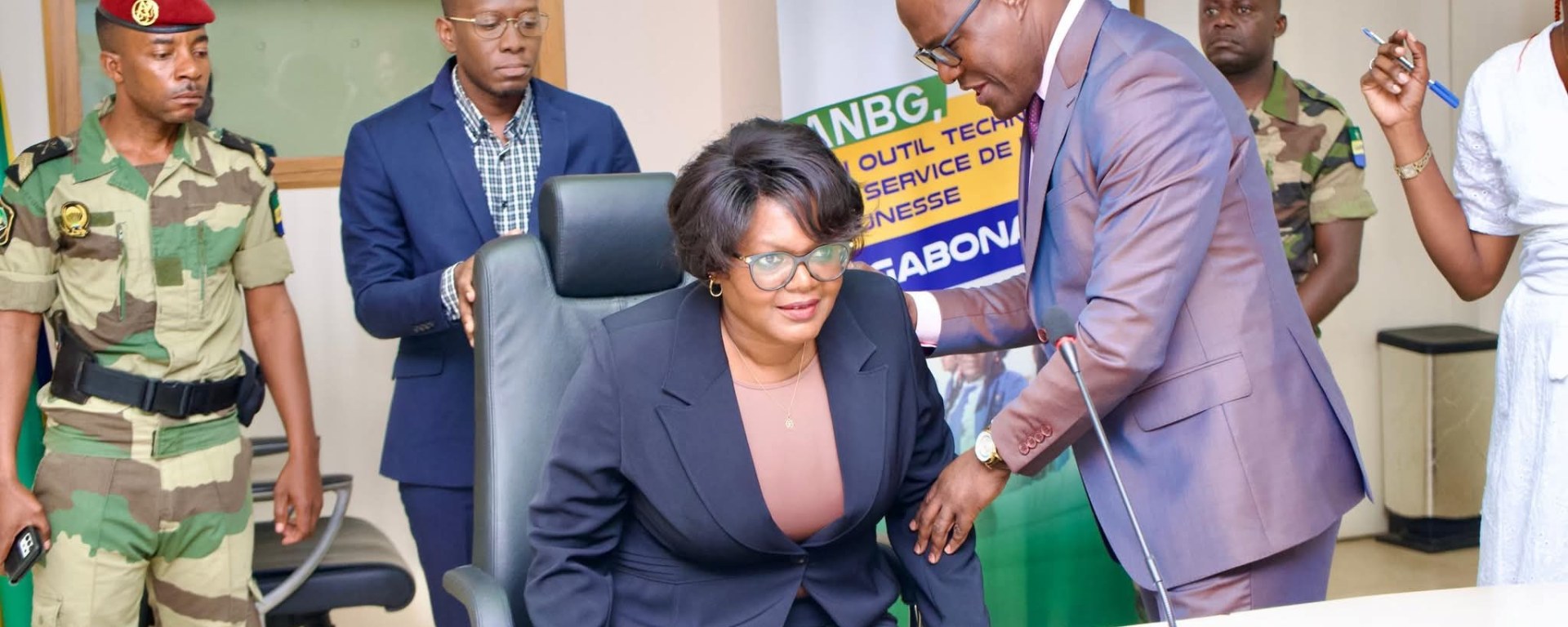 La cérémonie s’est tenue au siège de l’ANBG sis au quartier Oloumi, dans le 5e arrondissement de Libreville, en présence de nombreuses personnalités dont le Pr IDIATA Franck, Conseiller Spécial du Président de la République, Chef de Département Education, Formation Professionnelle et Enseignement Supérieur; du Dr MATSIÉGUI MBOULA Fortuné, Secrétaire Général Adjoint de la Présidence de la République, qui en assurait la supervision.