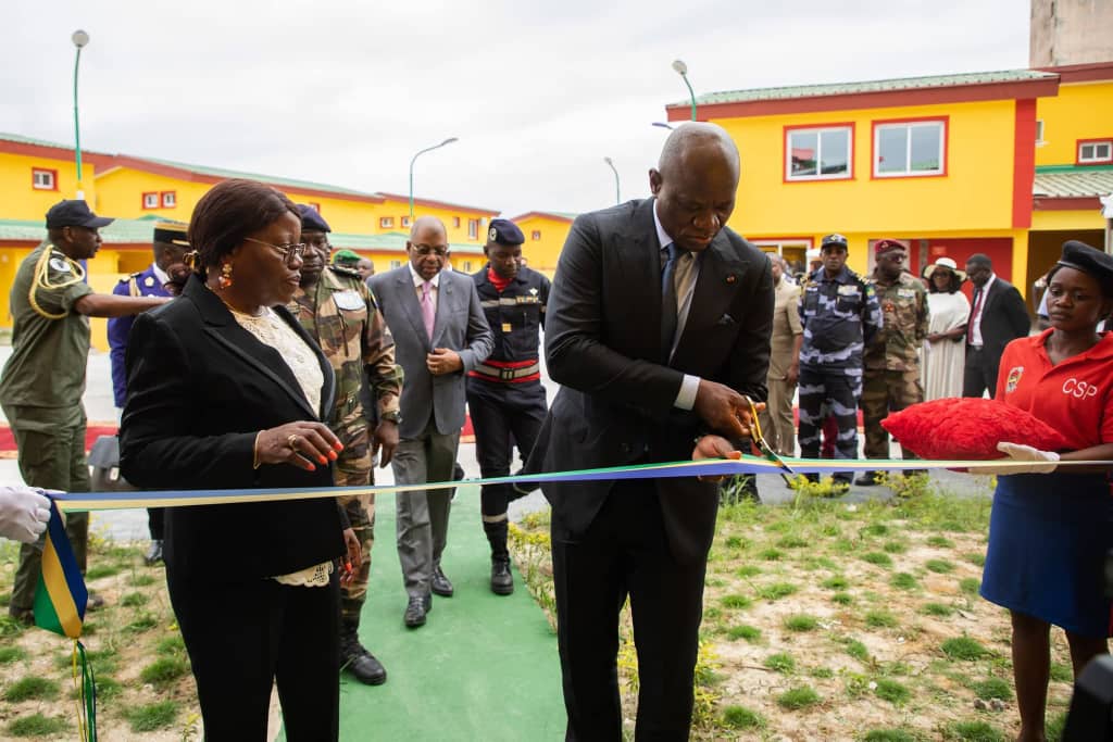 La cérémonie d’inauguration s’est déroulée en présence des membres du Gouvernement, de Hauts Responsables militaires, de Représentants des Forces de Défense et de Sécurité, ainsi que des bénéficiaires. Elle a été marquée par plusieurs temps forts notamment les allocutions du Commandant du Corps des Sapeurs-Pompiers et du Représentant de l’entreprise chargée des travaux, la décoration de dix agents par la Médaille de Reconnaissance des Forces Armées , la coupure symbolique du ruban inaugural, suivie de la visite guidée d’une villa témoin, la remise des clés des logements par le Chef de l’État , et la dotation en moyens roulants de dernière génération destinés aux casernes des provinces du Moyen-Ogooué, de la Ngounié, de la Nyanga, de l’Ogooué-Ivindo, de l’Ogooué-Lolo et du Woleu-Ntem.