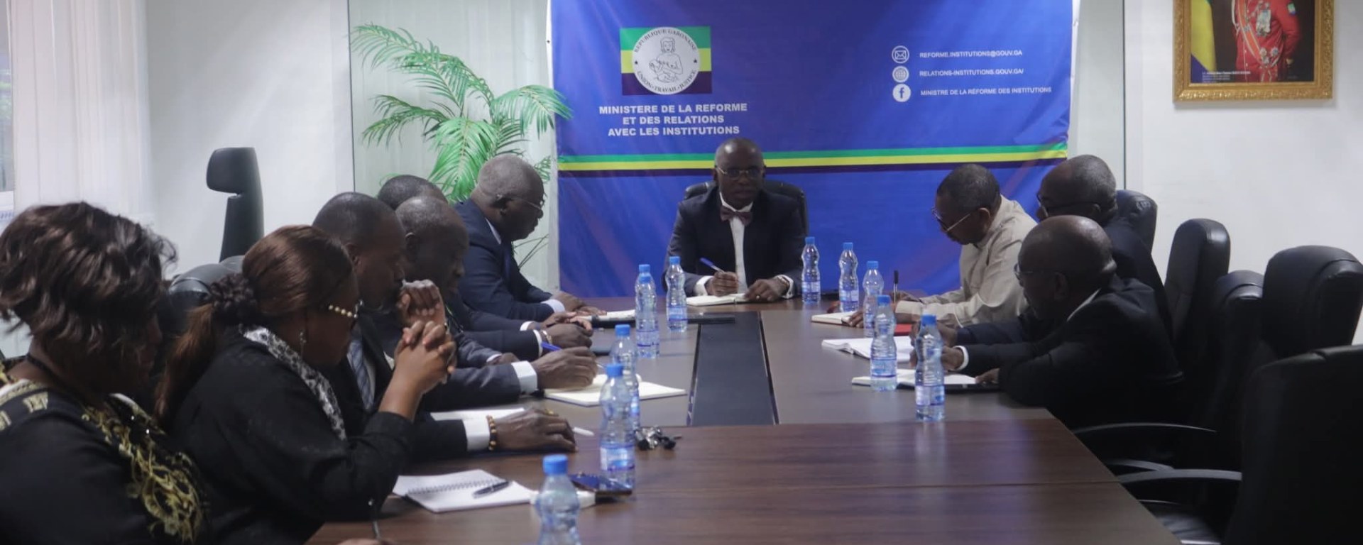 L𝒆𝒔 𝒎𝒆𝒎𝒃𝒓𝒆𝒔 𝒅𝒆 𝒍’𝑨𝒖𝒕𝒐𝒓𝒊𝒕é 𝒅𝒆 𝑪𝒐𝒏𝒕𝒓ô𝒍𝒆 𝒅𝒆𝒔 É𝒍𝒆𝒄𝒕𝒊𝒐𝒏𝒔 𝒆𝒕 𝒅𝒖 𝑹é𝒇é𝒓𝒆𝒏𝒅𝒖𝒎 (𝑨𝑪𝑬𝑹), conduits par leur président 𝑾𝒆𝒏𝒄𝒆𝒔𝒍𝒂𝒔 𝑴𝒂𝒎𝒃𝒐𝒖𝒏𝒅𝒐𝒖, ont été reçus en audience ce 𝒋𝒆𝒖𝒅𝒊 7 août 2025 par le Ministre de la Réforme et des Relations avec les Institutions 𝑭𝒓𝒂𝒏ç𝒐𝒊𝒔 𝑵𝒅𝒐𝒏𝒈 𝑶𝒃𝒊𝒂𝒏𝒈. Cette rencontre, marquée par une prise de contact officielle, a permis de présenter les nouveaux membres de l’autorité ainsi que les avancées enregistrées dans l’ organisation des prochains scrutins électoraux et référendaires.