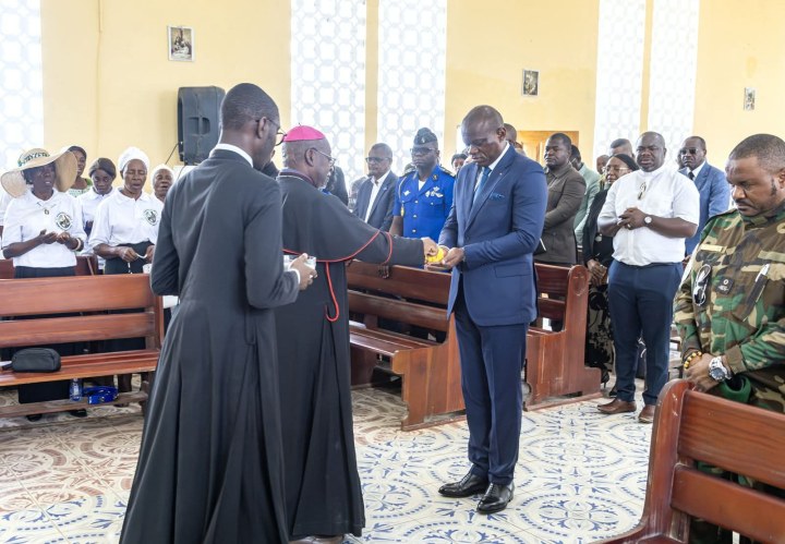 Accueilli par les autorités administratives, politiques, religieuses et les populations, le Chef de l’État a entamé sa visite par un office religieux dédié à la Nation et à la 5e République, et célébré en la paroisse Saint Marcel de Kango par l’Archevêque de Libreville, Monseigneur Patrick Iba-ba.