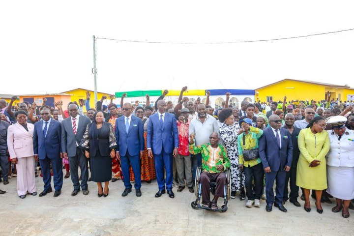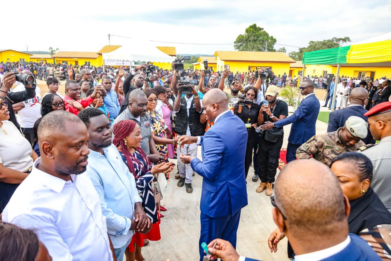 Le Chef de l’État s’est ensuite rendu sur le site du plan de réinstallation des populations affectées par l’ aménagement des bassins versants de Gué-Gué, Terre-Nouvelle et Lowé-IAI, où il a inauguré la cité de Bikélé Zong et remis les clés de 260 villas aux bénéficiaires.