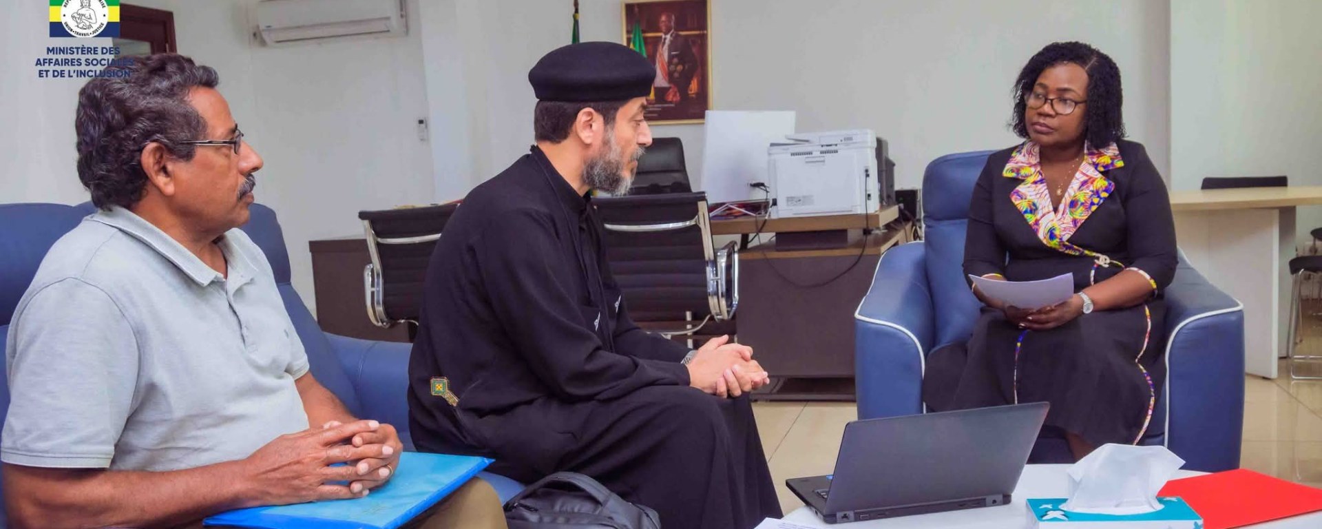 Les échanges entre le Ministre des Affaires Sociales et de l’Inclusion et l’homme de Dieu ont porté essentiellement sur le rôle de l’Eglise Copte Orthodoxe dans la société gabonaise et l’éventualité de faire bénéficier son engagement social aux Centres d’accueil du Ministère ainsi que ceux du privé agréés par le biais de son programme dénommé « Soyez parfait » déjà implémenté dans les établissements scolaires catholiques de Libreville.
