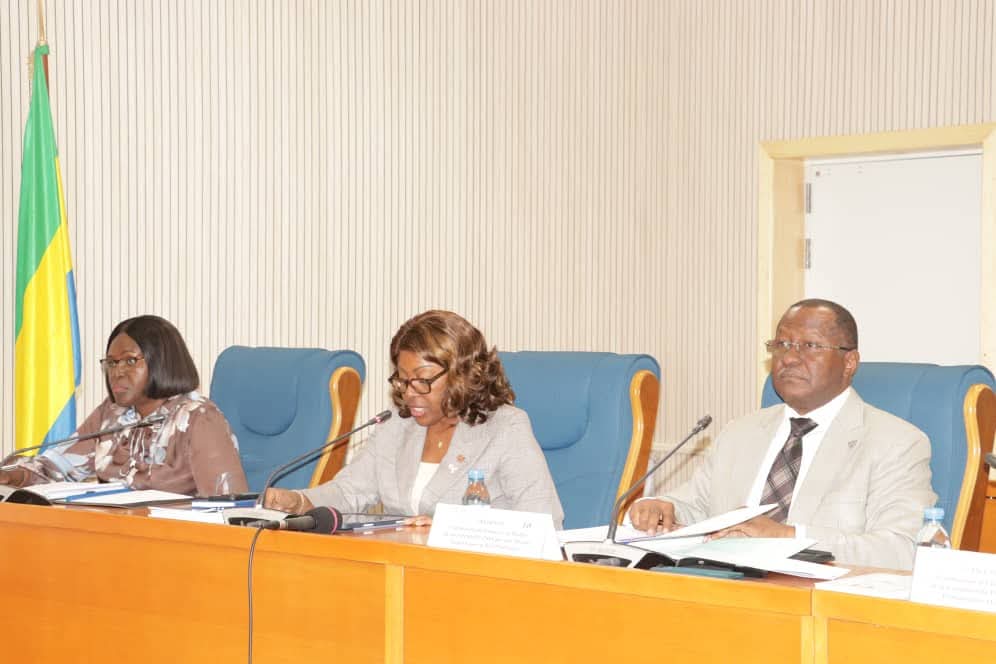 Poursuite des auditions des Membres du Gouvernement à l’Assemblée Nationale de la Transition dans le cadre de l’examen du Projet de loi des Finances exercice 2026. Lundi 20 Octobre 2025, la ministre de l’Agriculture, de l’Élevage et du Développement rural, Odette POLLO épouse PANDZOU, accompagnée de sa collègue, ministre de la Mer, de la Pêche et de l’Économie bleue/porte-parole du Gouvernement, Laurence MENGUE-ME-NZOGHE épouse NDONG sont venues défendre les crédits affectés à leurs départements respectifs devant la Commission des Finances, du Budget et de la Comptabilité publique, des Affaires Economiques, de la Production et du Développement.