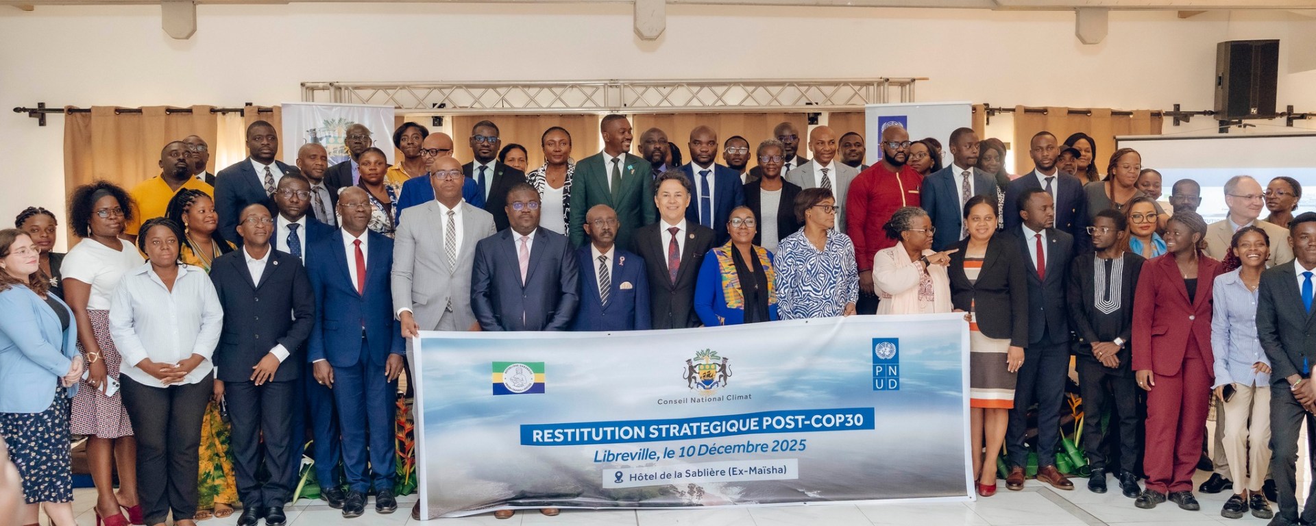 Le mercredi 10 décembre à Libreville, un Hôtel de la place a accueilli un atelier stratégique de restitution post-COP30, réunissant les représentants des administrations publiques, des institutions de recherche, des partenaires techniques et financiers, des organisations de la société civile et des organisations de jeunesse.