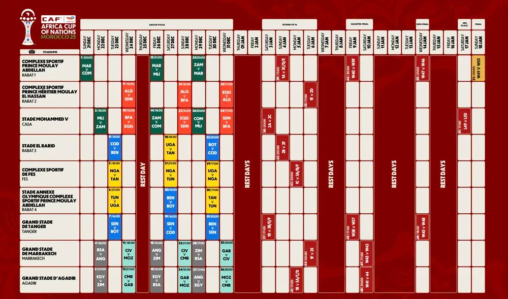 Les Groupes de la TotalEnergies CAF Coupe d’Afrique des Nations, Maroc 2025