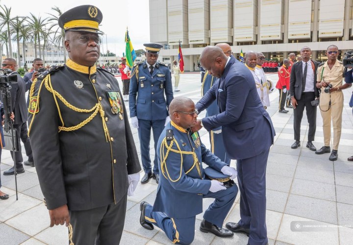 Dans la continuité de la cérémonie de prestation de serment du nouveau Gouvernement post-Transition, le Président de la République, Chef de l’État, Chef du Gouvernement et Chef suprême des Forces de Défense et de Sécurité, Brice Clotaire Oligui Nguema, a présidé ce lundi 5 janvier 2026 la cérémonie solennelle de remise de galons aux officiers généraux et supérieurs inscrits au tableau d’avancement pour l’année 2026.
