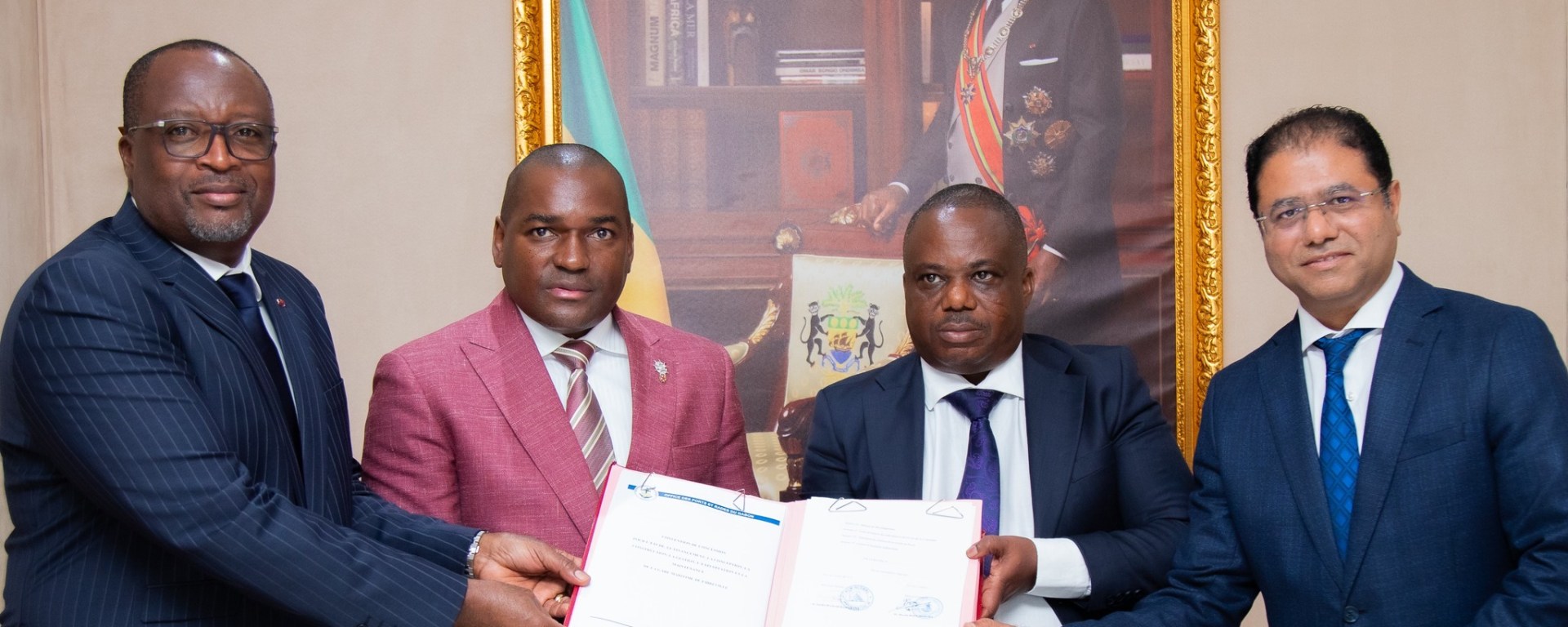 Le Ministre d’État, Ministre des Transports, de la Marine Marchande chargé de la Logistique, Ulrich MANFOUMBI MANFOUMBI, a présidé la signature de la convention de concession relative à la construction d’une gare maritime à Libreville, conclue entre l’Office des Ports et Rades du Gabon (OPRAG) et AOM GROUP.