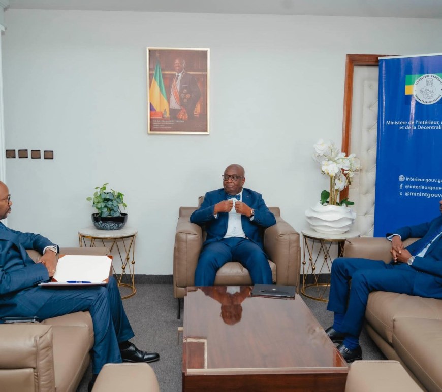 Le Ministre de l’Intérieur, de la Sécurité et de la Décentralisation Adrien NGUEMA MBA a reçu en audience, Mays MOUISSI, Secrétaire Général de l’Union Démocratique des Bâtisseurs (UDB). Accompagné de son Secrétaire Général Adjoint Mesmin WADA NGABIKOUMOU et de quelques autres membres du Directoire, le Secrétaire Général de l’UDB est venu répondre à l’appel lancé la veille par le Ministre de l’Intérieur pour le dépôt … Continuer de lire Conformité des partis: L’UDB montre l’exemple selon le Ministre