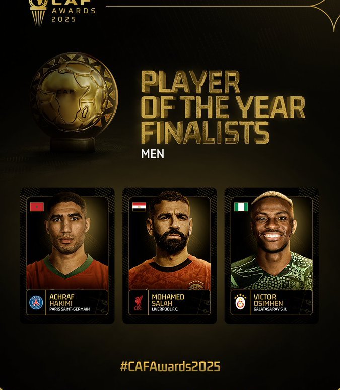 Football : Mohamed Salah, Achraf Hakimi et Victor Osimhen finalistes pour le titre de Joueur Africain de l’Année aux CAF Awards 2025