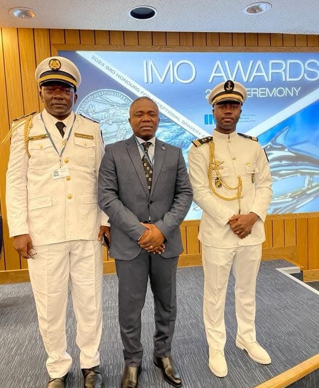 Deux marins gabonais, le Commandant Jérôme Noël Mougoula Saguiliba et le Lieutenant de Vaisseau Crépin Manfoumbi Mengara, ont été récompensés par l’Organisation Maritime Internationale (OMI) à Londres, lors de la 109e session du comité de la sécurité maritime pour leur bravoure exceptionnelle lors de sauvetages en mer. Le Commandant Saguiliba a sauvé 150 personnes lors du naufrage du transbordeur Esther Miracle, tandis que le Lieutenant … Continuer de lire Succès maritime : Deux marins gabonais honorés à Londres